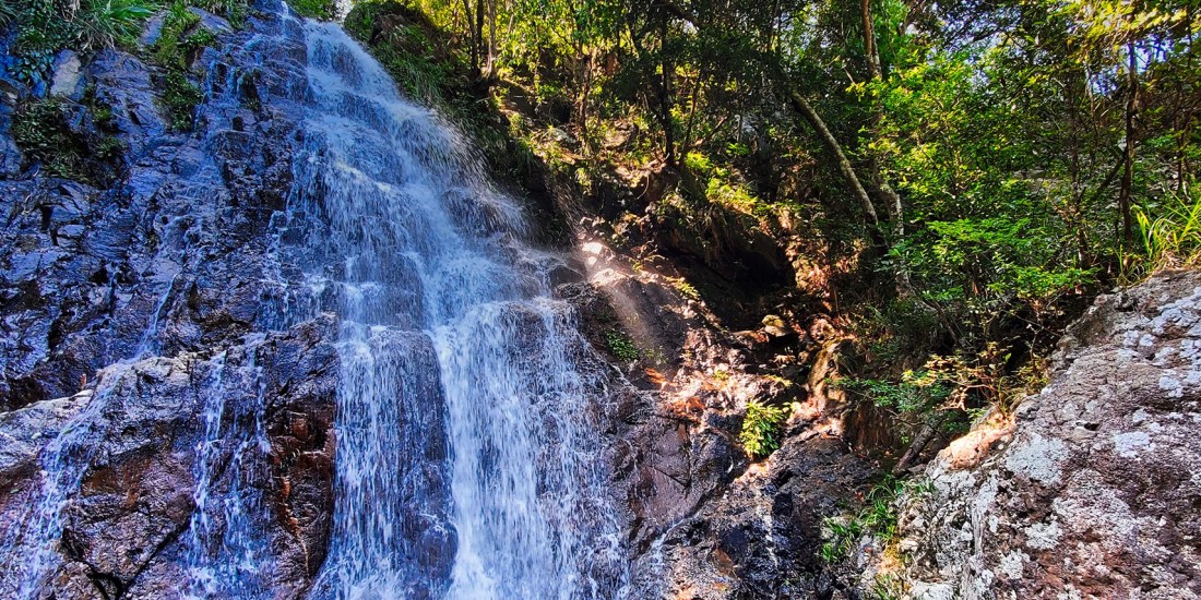 離開妙高台後朝「大帽山波波」進發,這裡有數條隱密的小徑可駁上大帽山道,但大概走的人不多,路徑不算明顯。接上大帽山道後便一直近 3 公里的水泥路,緩緩上坡的路不算難走,反而後段兩段較斜的下坡需多加留意。走到水泥路盡頭的四方山涼亭,依路牌指示轉入左邊小路前往梧桐寨。這段路較為狹窄,不少位置均只能容一人通過,遇上反方向人流的話需互相遷就。再走約 1.3 公里路後下降至一分岔口,左路可直接下降至萬德苑,右路則會途經梧桐寨的四個瀑布。一場來到當然不會錯過瀑布,取道左路進入瀑布周邊範圍,路面變得比之前崎嶇,間中會經過落差較大的碎石段。小心翼翼下降後首先會來到散髮瀑,層次分明及廣闊的瀑面令它成為梧桐四瀑中外觀最美的一個。緊接其後的便是接近 30 米高的主瀑,落差之大令其有著非凡的氣勢。餘下的中瀑及井底瀑則相對遜色。四個瀑布都遊覽過後接回較易走的山路一直下降至萬德苑(有補給),再沿梧桐寨路走約 800 米便抵達林錦公路巴士站完成行程。