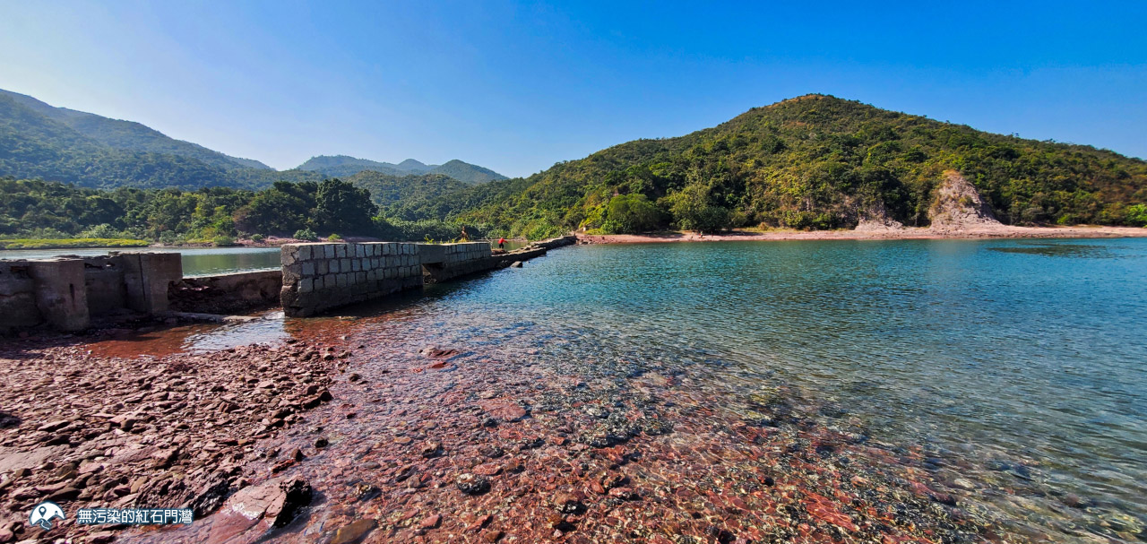 - 通過紅石門堤壩時需小心中央的缺口位置,亦需留意潮漲時間,在對岸逗留太久遇上潮漲堤壩積水的話或需涉水而回。