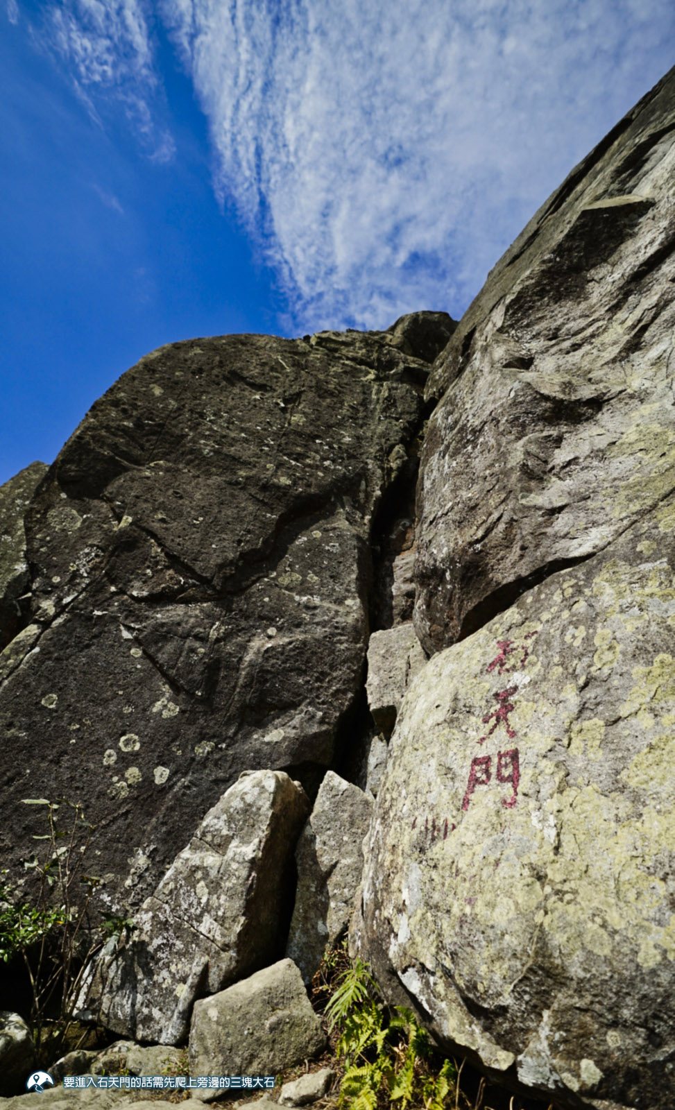 - 嘗試穿越石天門需小心,入口需先爬上一塊有一定高度的踏腳石,洞內極狹窄,即使身型小仍要側身通過,亦需注意洞內高低不平。而從出口接回平地亦有少量高度差,需量力而為。