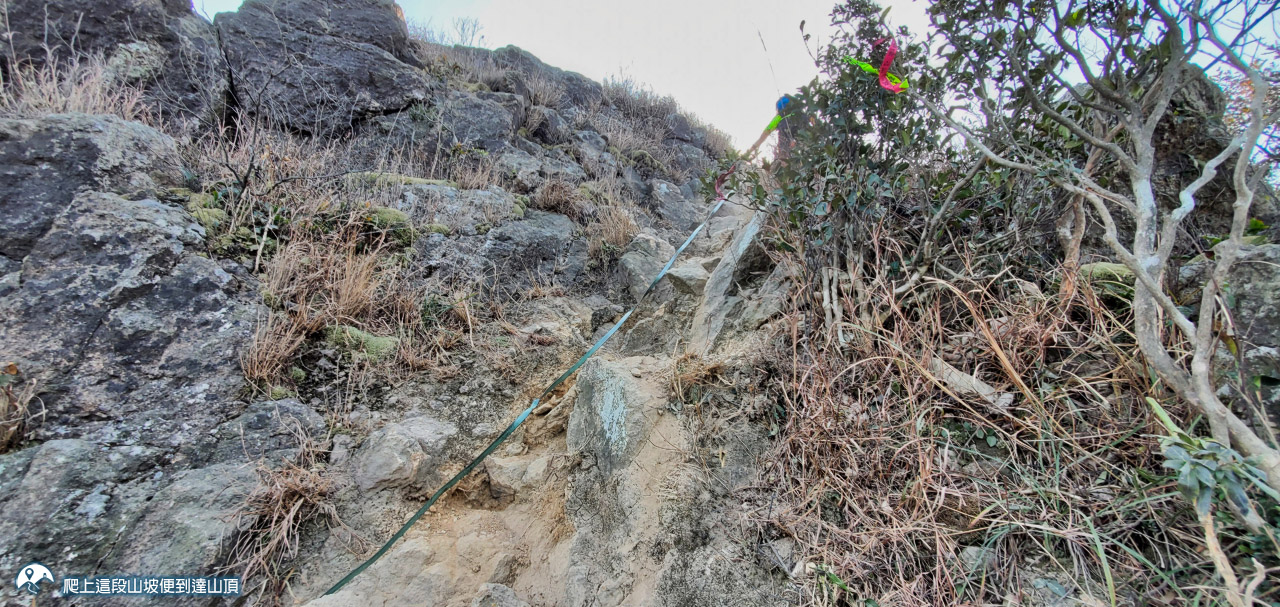 - 位置 1 (蚺蛇尖) 從東脊下降可續走山嶺前往米粉頂,長咀