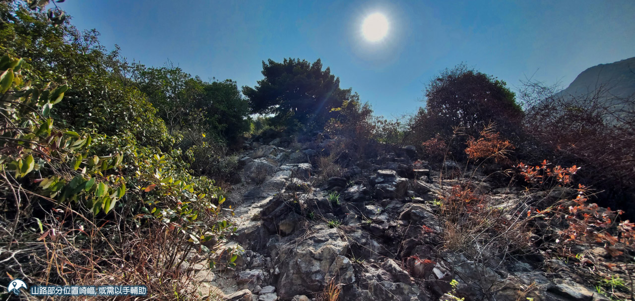 - 不登婆髻山的話行程難度會降低不少,惟初段的引水道天梯仍頗為吃力。