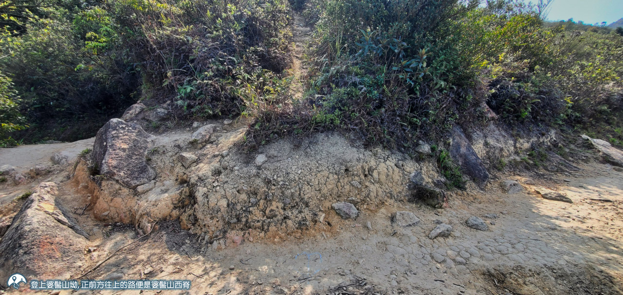 - 婆髻山西脊為陡峭的沙石路,南脊則是落差較大的岩場,考量難易度的話似乎從西脊登山,南脊下山會較易走。