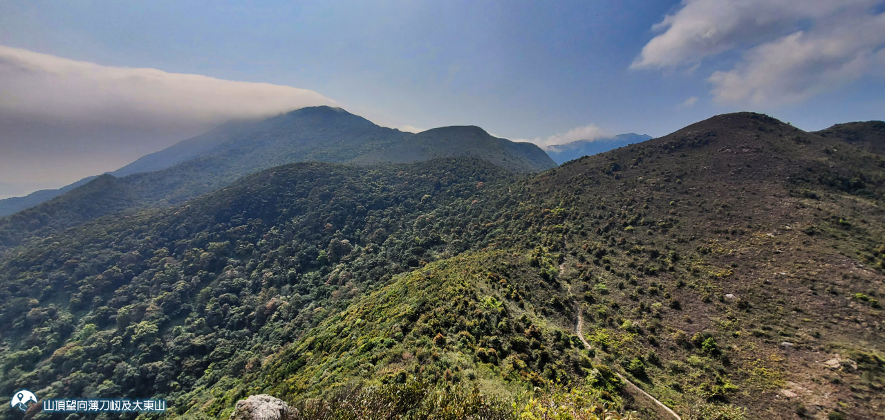 - 位置 2 (婆髻山山腰) 向南續走山徑可經鴨腳瀝,蓮花山等接上鳳凰徑。