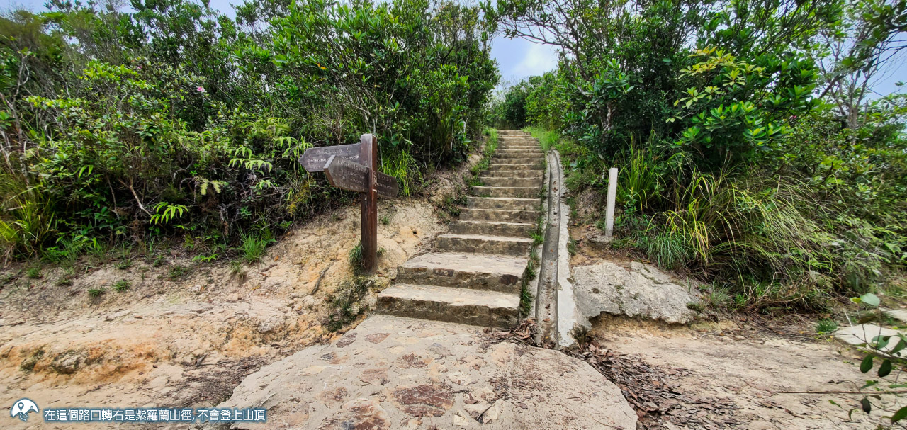 - 位置 4 (路牌處) 轉左為紫羅蘭山徑,路程較長但不會登上紫羅蘭山頂,爬升較少,風景亦不錯。