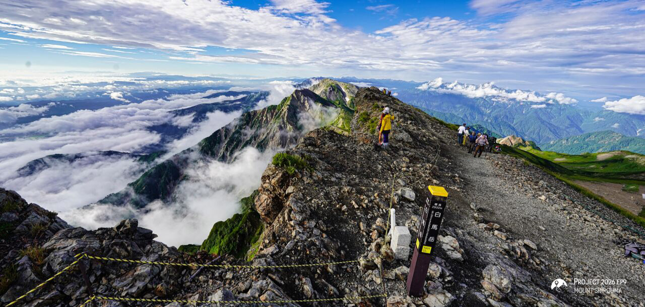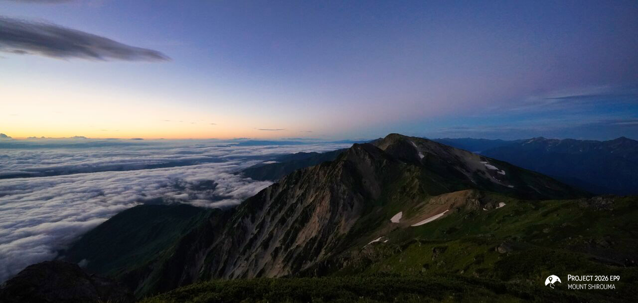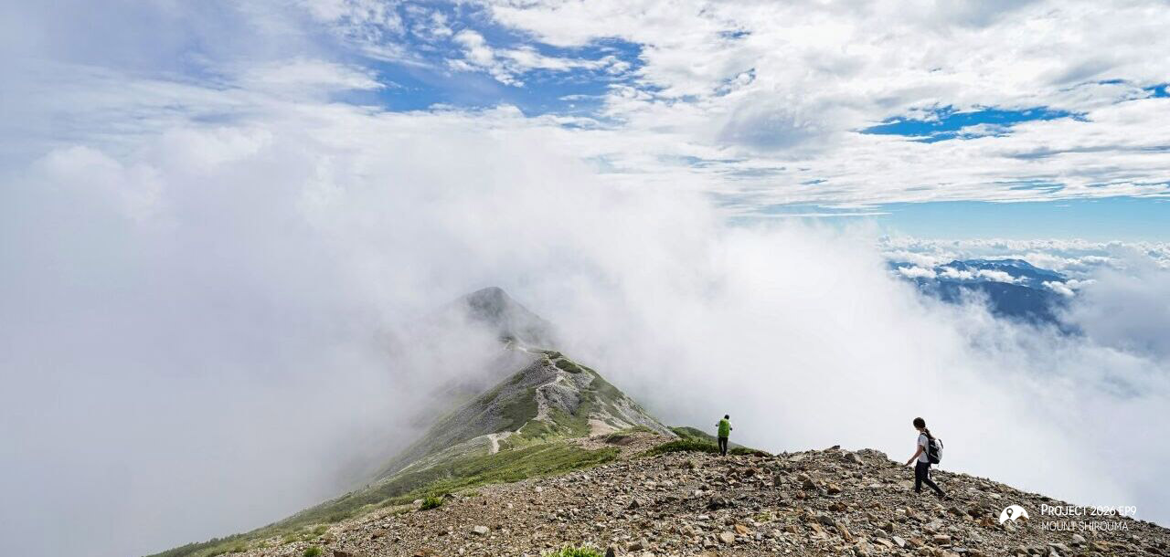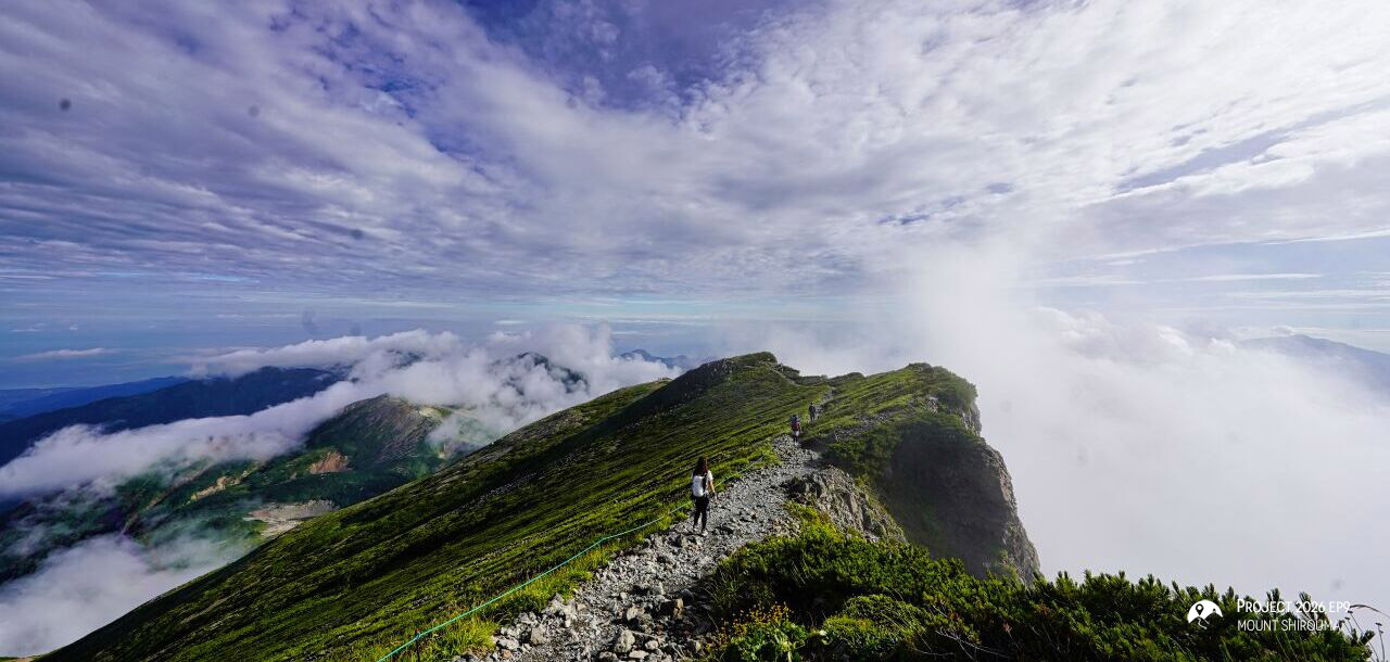 早餐時間為五時半,因為入住8畳個室的關係,可安排在 Sky Plaza 享用早餐,人流較少之餘亦能較好的風景。早餐過後整理好房間,離開白馬山荘開始第二日行程。起步後直奔山頂,一般山岳的登頂段都較峽窄陡峭,白馬岳的登頂段則相對平緩,且路面寬闊,不用太花力氣便能看見 2,932米的白馬岳山頂標高點。來到山頂少不免要打一下卡,山頂擁有非常開揚的風景,群山伴隨著雲海,除了幸運,也是努力過後的回報。離開山頂後開始下降段,先後會經過三国境、小蓮華山和船越ノ頭三個主要山峰,這段路均是在山嶺上走,除了小部分較斜的路段需手足並用及少量路段懸空感較大外,整體上難度不大,可邊走邊欣賞壯麗的北阿爾卑斯山脈,運氣好的話還能遇到日本國寶雷鳥。