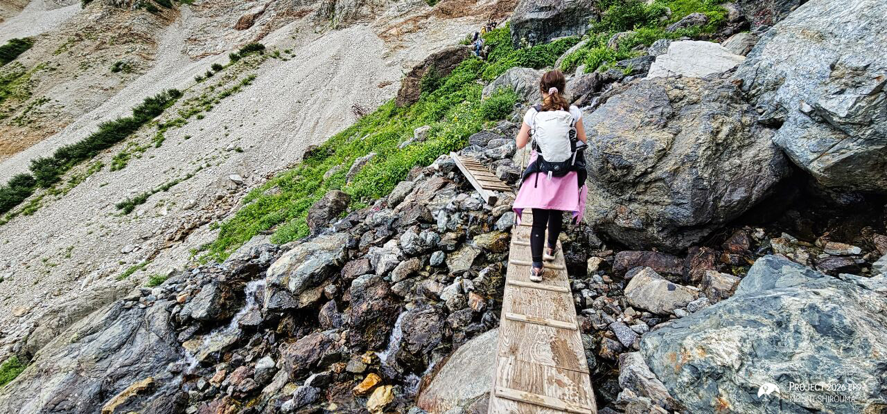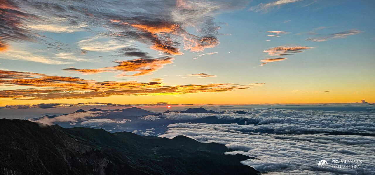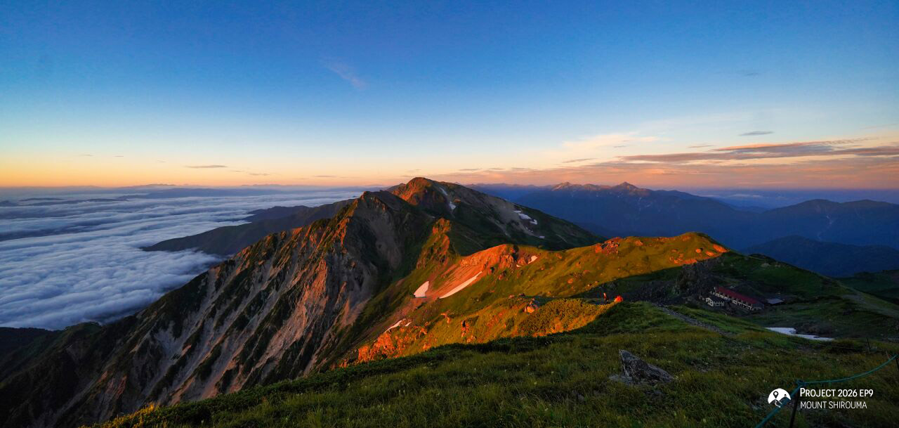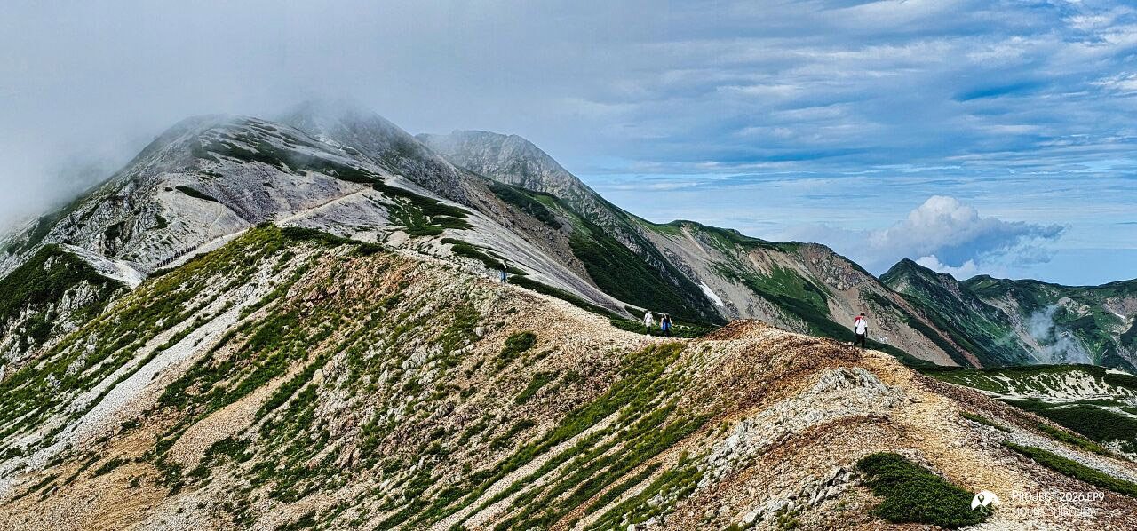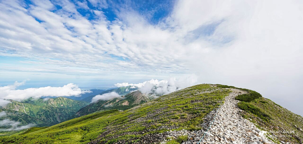 早餐時間為五時半,因為入住8畳個室的關係,可安排在 Sky Plaza 享用早餐,人流較少之餘亦能較好的風景。早餐過後整理好房間,離開白馬山荘開始第二日行程。起步後直奔山頂,一般山岳的登頂段都較峽窄陡峭,白馬岳的登頂段則相對平緩,且路面寬闊,不用太花力氣便能看見 2,932米的白馬岳山頂標高點。來到山頂少不免要打一下卡,山頂擁有非常開揚的風景,群山伴隨著雲海,除了幸運,也是努力過後的回報。離開山頂後開始下降段,先後會經過三国境、小蓮華山和船越ノ頭三個主要山峰,這段路均是在山嶺上走,除了小部分較斜的路段需手足並用及少量路段懸空感較大外,整體上難度不大,可邊走邊欣賞壯麗的北阿爾卑斯山脈,運氣好的話還能遇到日本國寶雷鳥。