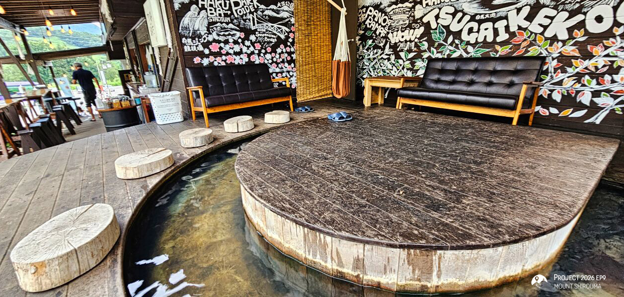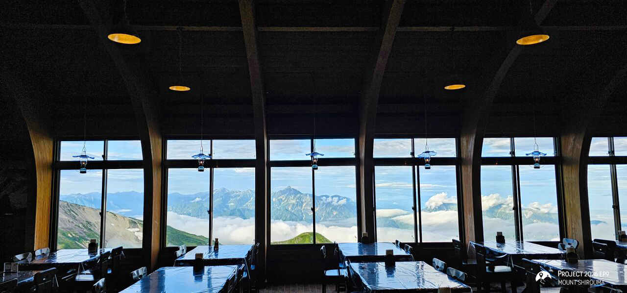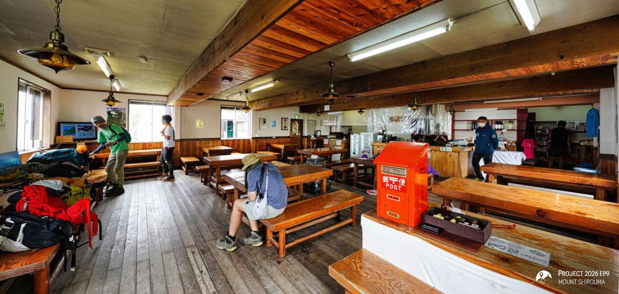 安頓好後將部分衣物拿到乾燥室,然後四周參觀一下。白馬山荘的規模很大,單是飯堂已有兩個,閱讀角和公共空間的範圍也不少。早到達的話可在山屋外的木桌椅前放空,或前往其中一個飯堂「スカイプラザ Sky Plaza」,Sky Plaza擁有能眺望北阿爾卑斯山脈的景觀,這裡亦有不同熱食甚至甜品供應,是個能邊吃邊欣賞連綿山巒的好地方。