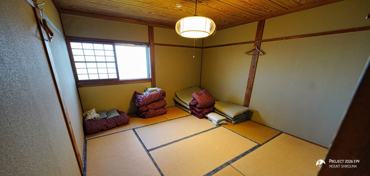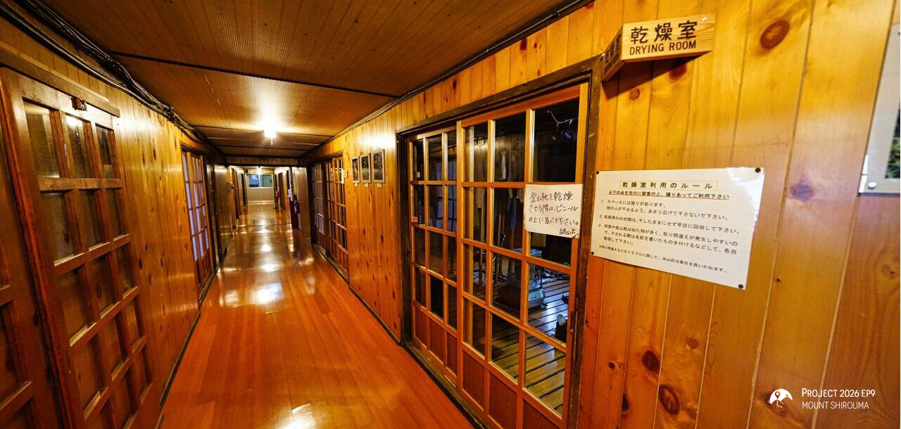 1905 年開業的白馬山荘是日本最大的山小屋,容納人數達 800 人。山屋除提供通鋪之外亦可選擇不同大小的獨立空間或個室。山荘的內在環境十分好,完全看不出已有百年歷史。簡單辦好入住手續後便前往房間休息。這次預訂了兩間8畳的個室,每間最多可容納八人,但預訂時山莊建議每間住五至六人比較鬆動。實際住下來的確如是,若將八套披鋪全部打開的話完全密鋪整間房,比外面的通鋪更窄。