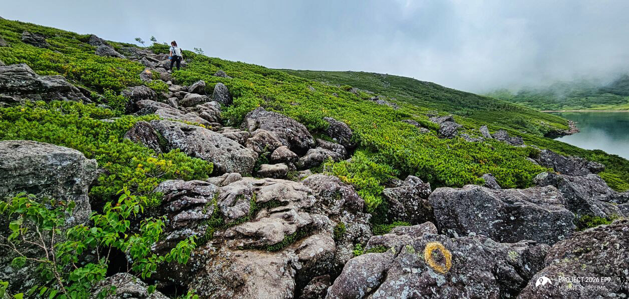 通過船越ノ頭後下降坡度稍為增加,約 40 分鐘後抵達白馬大池,這裡又是另一片恬靜的境地,旁邊的白馬大池山莊是另一個熱門的露營場,網上也能找到不少在這裡拍攝的星空和銀河作品。白馬大池山莊是終點前最後一個有規模的休息點,建議在這裡作充分補給,因為接下來的路雖然是下山,但感覺消耗及集中度比登山的一段還高。離開白馬大池後首先要重新爬升至白馬乗鞍岳,路段是崎嶇不平的岩石群,有點像在走防波堤的感覺,加上在旁邊便是白馬大池,遇上濕滑的路段需更小心通過。單是登上白馬乗鞍岳已花了不少時間,而接下來的路段雖再無上升段,但全都是岩石混雜的泥路,幾乎沒有平路可言。離開白馬乗鞍岳後會通過不少巨大岩石的路段,走起來就像廣闊版的鹿巢石林。感覺若在初夏,路段仍覆蓋著雪的時候反而會更好走。行進方向有充足指示,惟需注意平衡及避免觸發落石。重覆的爬過無數石堆,不知跨越了多少個岩石群後終於在前方再次看到木道,這代表著終於來到天狗原,終於可以走一走平路稍作喘息。惟舒服的路段總是那麼短,最後的下降段很快便變回原始路面,天狗原受惠於周而復始的融雪,擁有著高原濕地的氣候,亦正因為此大部分下降段都是濕潤的泥土。捱過這最後一段下降,再次看到建築物時便代表已經到達栂池自然園,從遊客中心後方繞到登山口,踏上昨天早上之後便再沒走過的水泥路,完成整個白馬岳登山旅程。