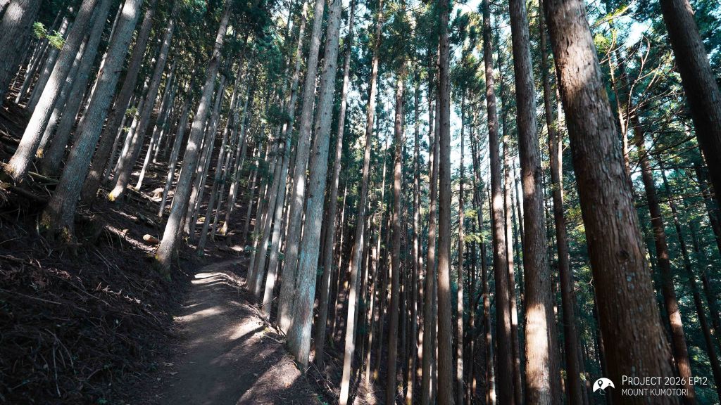 在JR奧多摩站前登上巴士前往鴨沢,巴士沿奧多摩湖而駛,山巒的晨霧點綴著靜謐的湖面,給人十分寧靜的感覺。經過 25分鐘車程後,於早上7時抵達鴨沢,站旁已能看見標示著「雲取山鴨沢登山口」的涼亭,旁邊亦有洗手間,在此整頓好後便可從涼亭旁的樓梯出發登山。熱身是一段水泥路,其後進入山路至丹波山村(雲取山登山口)駐車場,自駕的話可此起步。隨後繼續走水泥路,當看見寫著「丹波山村雲取山」的綠黑旗幟時留意左方有小路轉入原始登山道。進入山道後在高聳入雲的杉樹林中緩緩登山,是在香港登山不能感受到的風景。這段山道整體的路況良好,惟大部分路段較窄,不能二人並行,而且不少位置略為向外傾,加上沿路有不少樹根,不能太放空地行走。從鴨沢登山的話,中途會經過一間破屋,因與「鬼滅之刃」主角炭治郎的家被鬼襲擊的劇情吻合,這屋亦被當成炭治郎的家。此外,登山途中亦一直會出現銅色的故事板,敍述平安時代武將「平將門」取道此登山道逃亡的傳說,為登山旅程加添一點趣味。